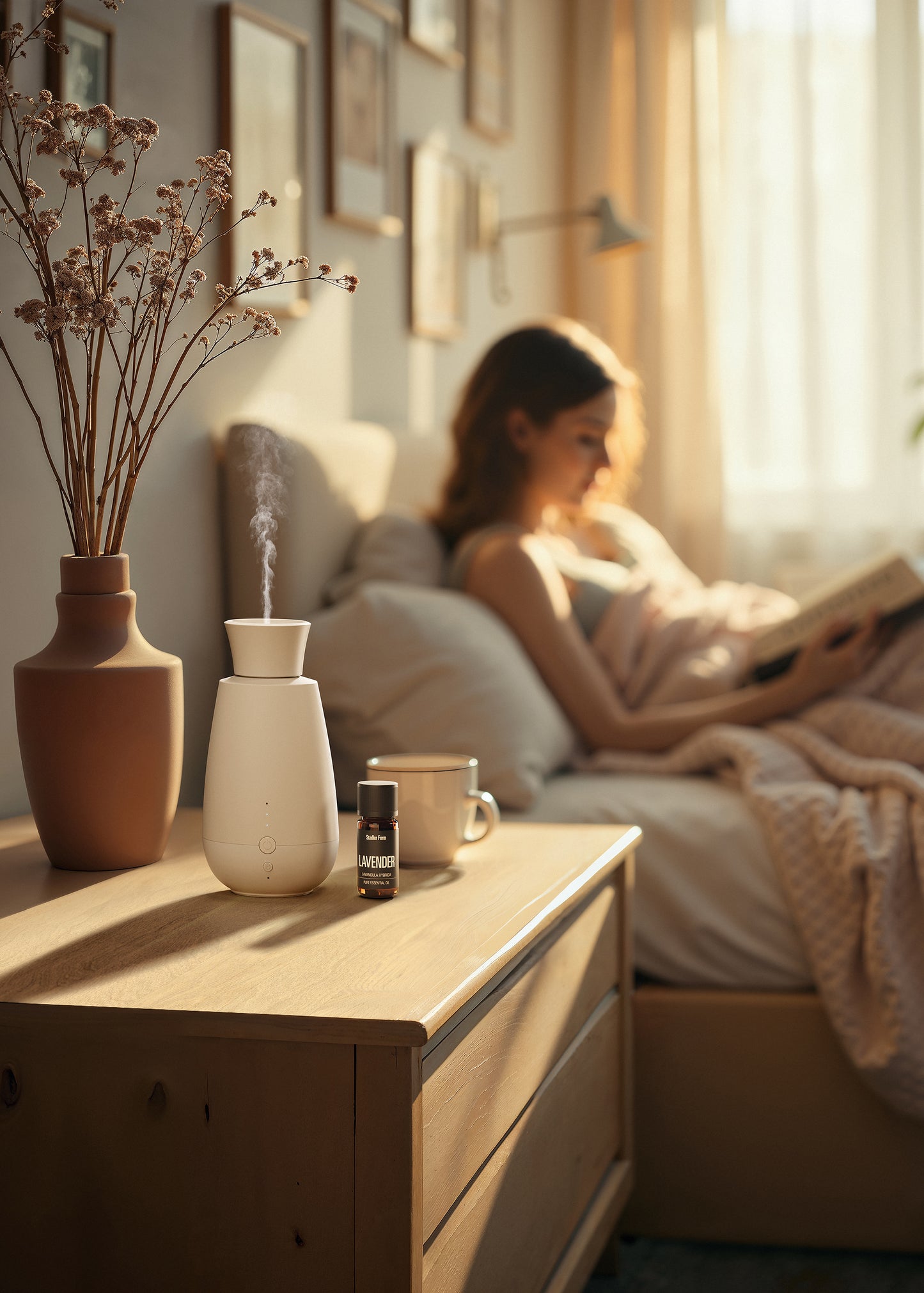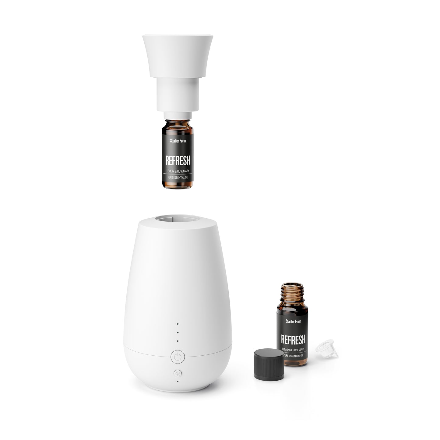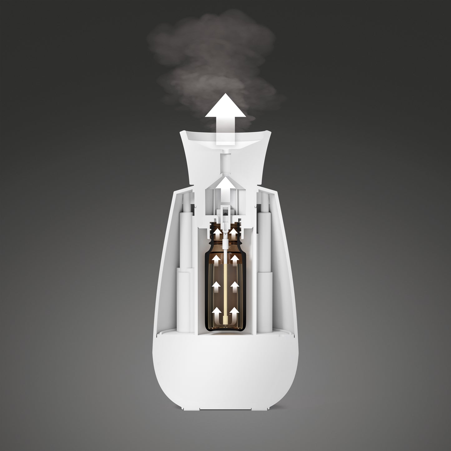 Ella sprays essential oils directly from the bottle, without water, and provides an intense natural fragrance experience thanks to her spray system. Her battery life of around 10 days ensures long-lasting fragrance enjoyment. The intelligent light sensor only activates Ella when it is bright and leaves her dormant when it is dark, perfect for everyday use. Elegant design, easy handling and LEDs that can be switched off make Ella the perfect fragrance companion